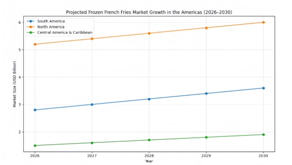 The frozen French fries market in the Americas is growing rapidly, driven by urbanization, fast-food expansion, and rising consumer demand for convenient potato products. According to 2026 estimates: